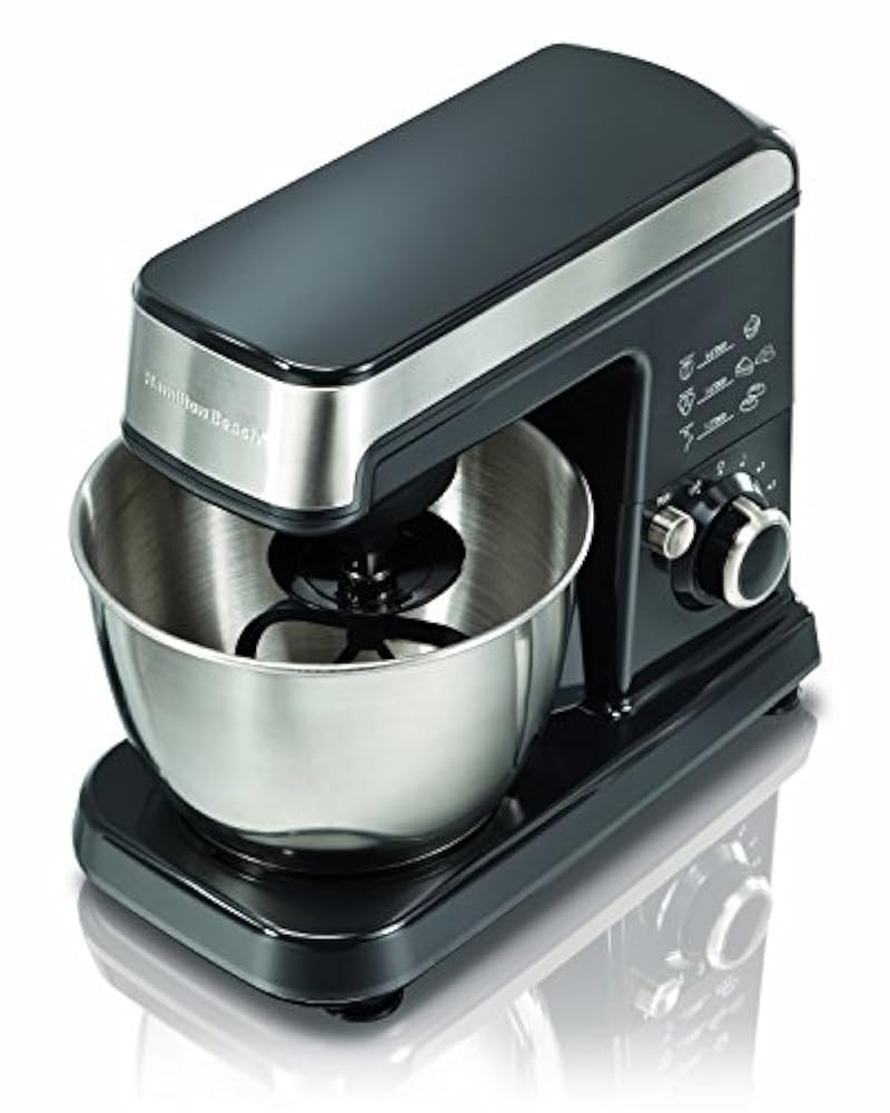 ![]() Hamilton Beach 6 Speed Professional Stand Mixer Powerful 300 Watt Motor The stand mixer is great for everyday mixing and can even handle the thickest cookie dough Thorough Hands-Free Mixing The mixing head orbits around the bowl as the beater rotates in the opposite direction to better mix ingredients Six Speeds & Special Fold Setting The kitchen mixer gives you maximum versatility and precise control at every speed Flat Beater Attachment The artisan mixers beater mixes cakes, cookie dough, fudge, or potatoes Splatter Shield The professional mixers extra guard, protects against messy drips, drops, and spill Dishwasher Safe All attachments, as well as the stainless steel 4-quart mixing bowl, are dishwasher safe for fast cleanup Features Same mixing action as KitchenAid mixers Mixing action gives complete bowl coverage Powerful 300 Watt motor Better mixing than 2-beater stand mixers 3 Attachments offer mixing versatility 6 Speeds and special fold setting Stainless steel 3.5 quart bowl Includes flat beater, whisk and dough hook Mixing head spins as it rotates completely inside the bowl Tilt-up head lifts out of the way for easy bowl access Nonslip feet Same Mixing Action as KitchenAid MixersSame Mixing Action as Kitchen Aid Stand Mixers300 Watt, 6-Speeds and Special Fold Setting, Tilt-up Head Lifts Out Non-Slip FeetMixing Head Spins as it Rotates Completely Inside the BowlDishwasher Safe Flat Beater, Whisk, Dough Hook & Stainless Steel 3.5-Quart BowlComplete Bowl Coverage Better Mixing than 2-Beater Stand Mixing
